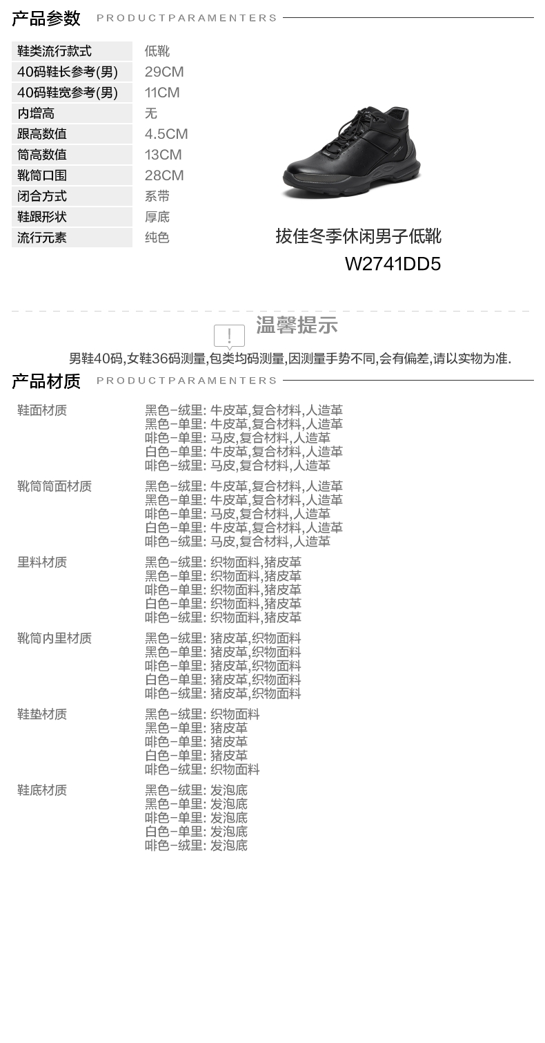 | 闭合方式:系带 | 40码鞋宽参考(男):11CM | 靴筒口围:28CM | 上市时间:2025年冬季 | 鞋类流行款式:低靴 |