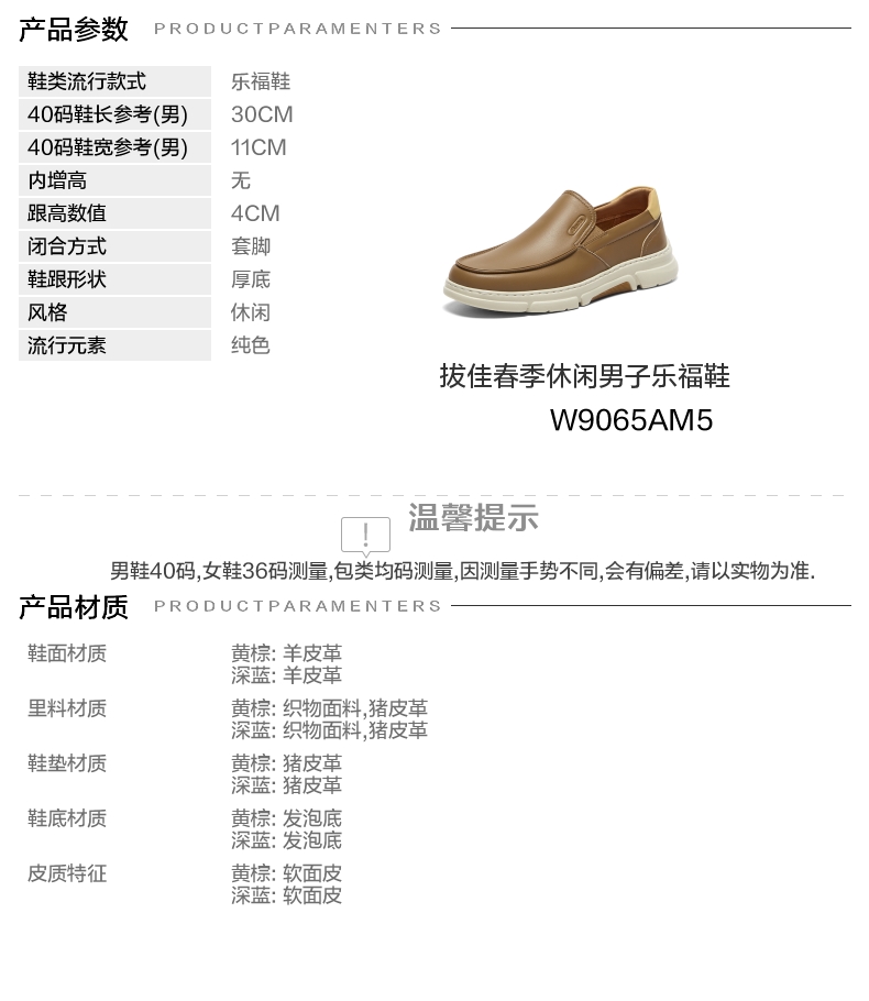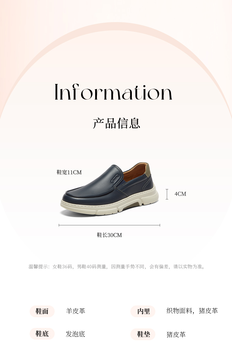 | 40码鞋长参考(男):30CM | 鞋帮:低帮 | 鞋底材质:发泡底 | 内增高:无 | 鞋面材质:羊皮革 |