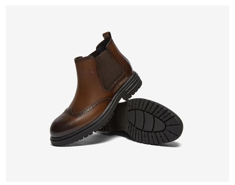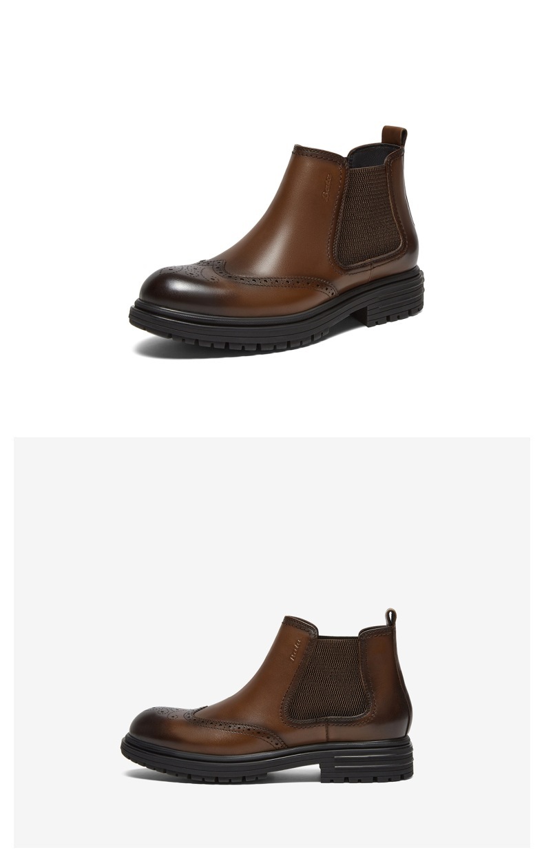 | 跟高数值:3.5CM | 色系:啡色 | 性别:男子 | 筒高数值:11CM | 靴筒筒面材质:织物面料牛皮革 |