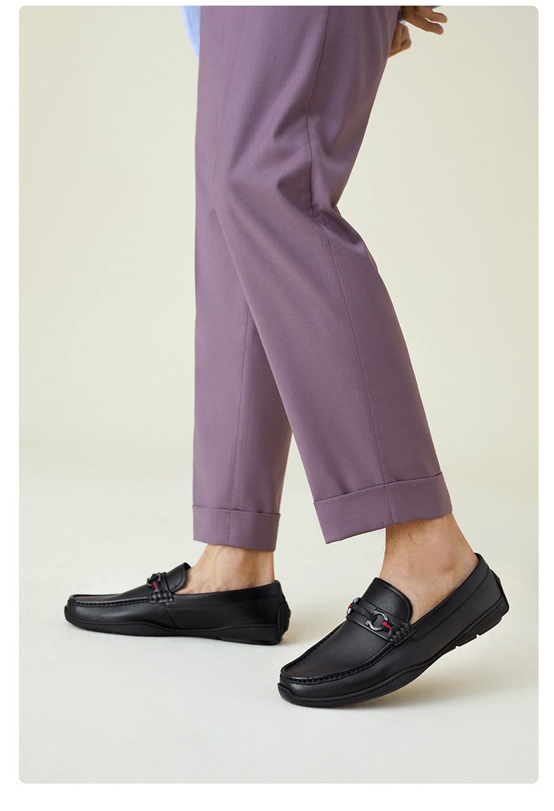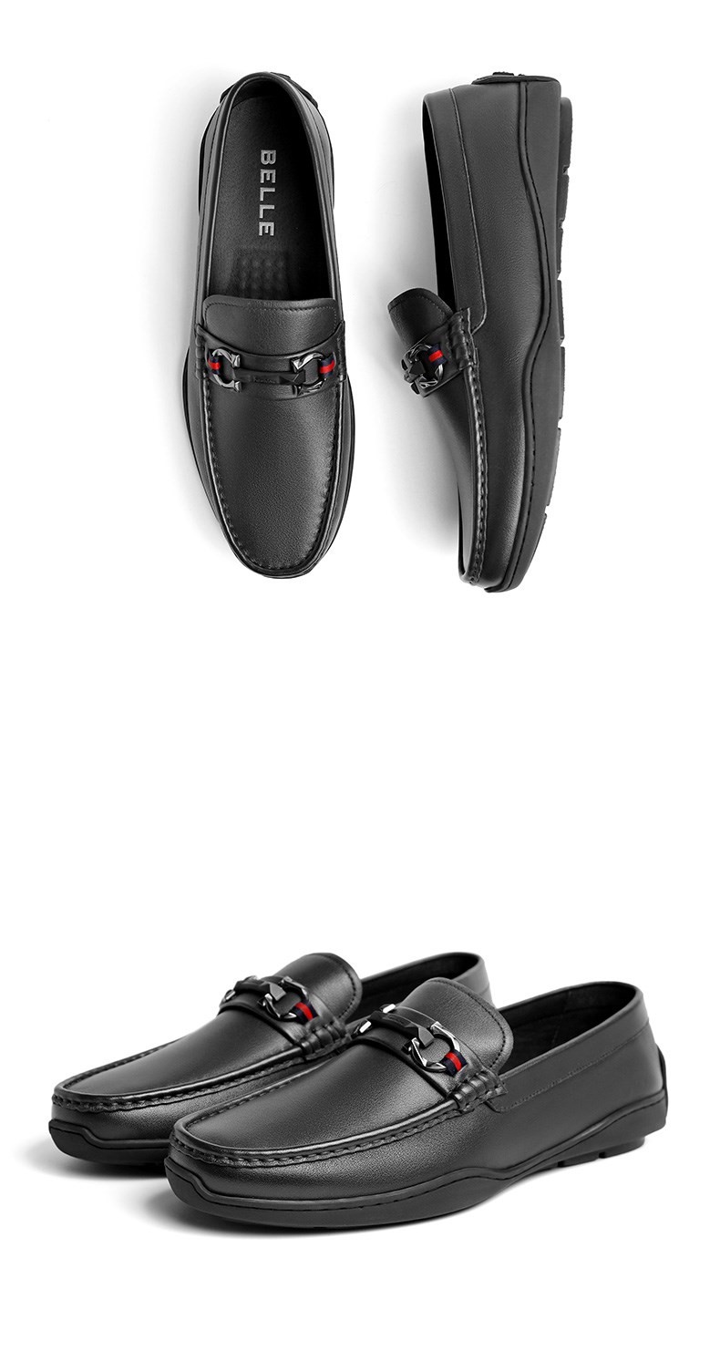 • 百丽舒适豆豆鞋男鞋2024夏牛皮革套脚休闲鞋11608BM4