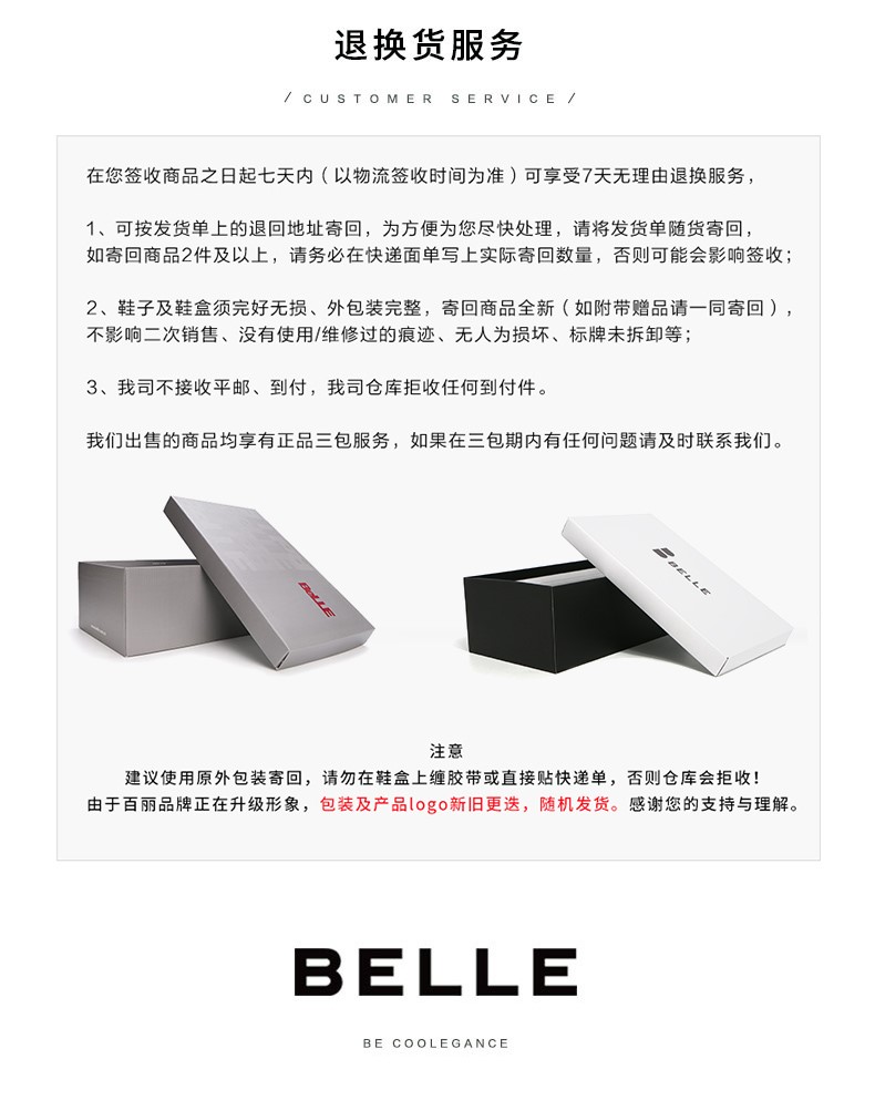 BeLLE(百丽),百变所以美丽。主张多变多元的新生代态度,不断融合潮流趋势,拥抱不同的生活体验与生活经历。将女性的百变魅力注入到鞋履设计中,让女人在不同的人生阶段,不同的场合,不同的潮流趋势下,尽显自己自信的一面。致力于为现代都市女性提供充满自由的行走体验。