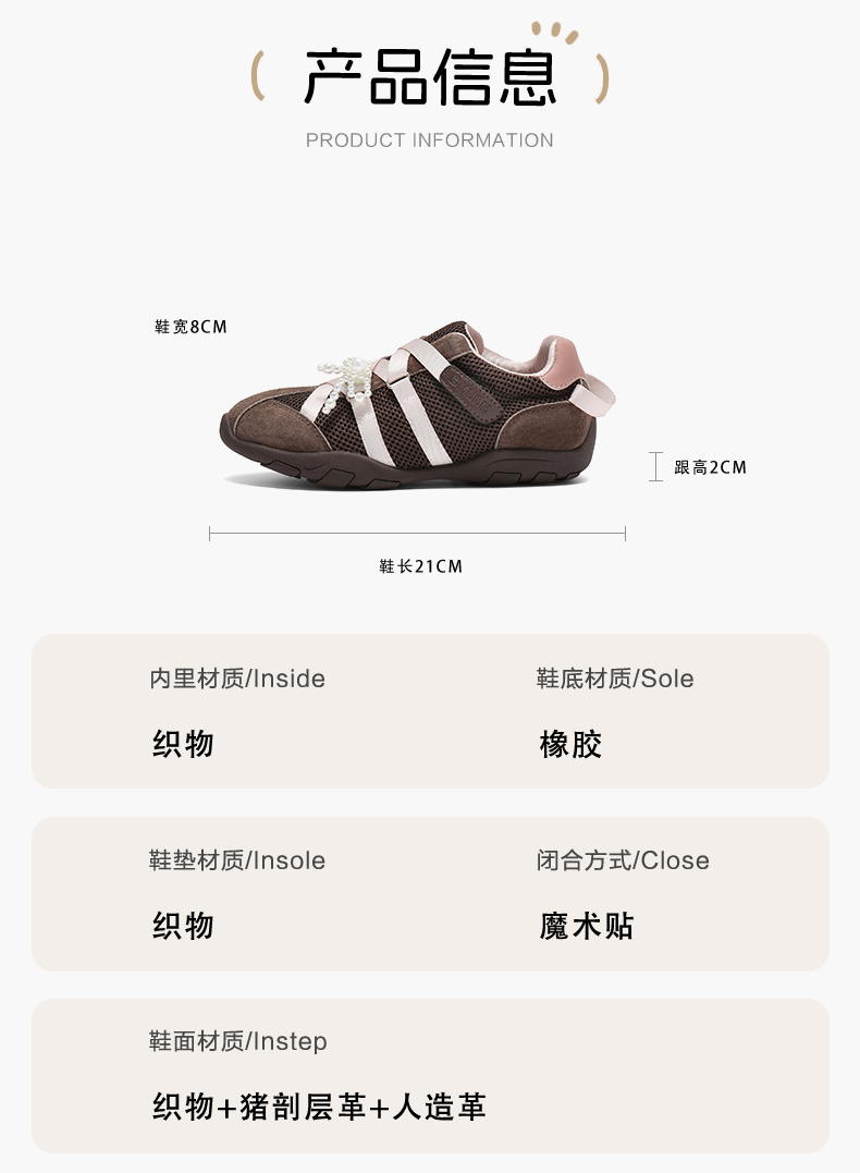| 鞋头款式:圆头 | 鞋面图案:拼色 | 鞋跟形状:低跟 | 流行元素:拼色 | 年龄段:中童6~12岁 |