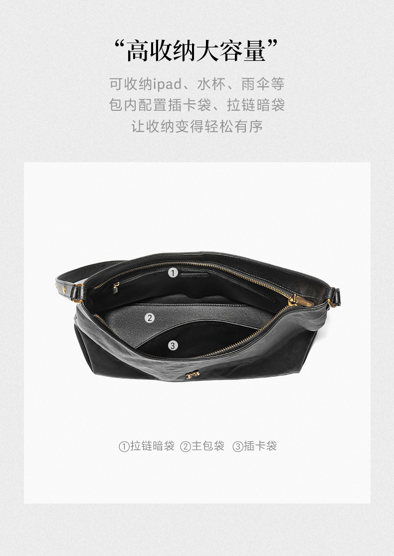 | 包的规格:W360*H300*D110mm | 内部结构:拉链暗袋/卡位 | 背带方式:单肩/斜挎 | 风格:休闲 | 色系:黑色 |