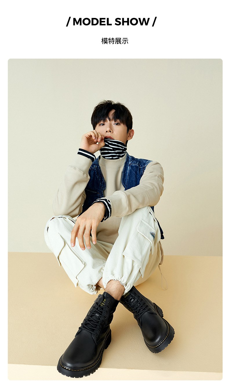 | 风格:休闲 | 色系:黑色 | 跟高数值:3.5CM | 40码鞋宽参考(男):10CM | 筒高数值:14CM |