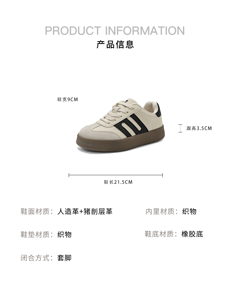 | 鞋码/内长:33码/21.5cm | 闭合方式:系带 | 是否禁航:非禁航 | 风格:休闲 | 色系:米色 |