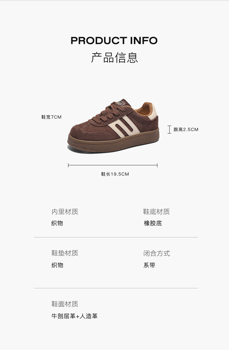 | 款式季节:春季 | 运动项目:休闲 | 皮质特征:二层皮 | 鞋类流行款式:休闲鞋 | 主要功能:耐磨 |