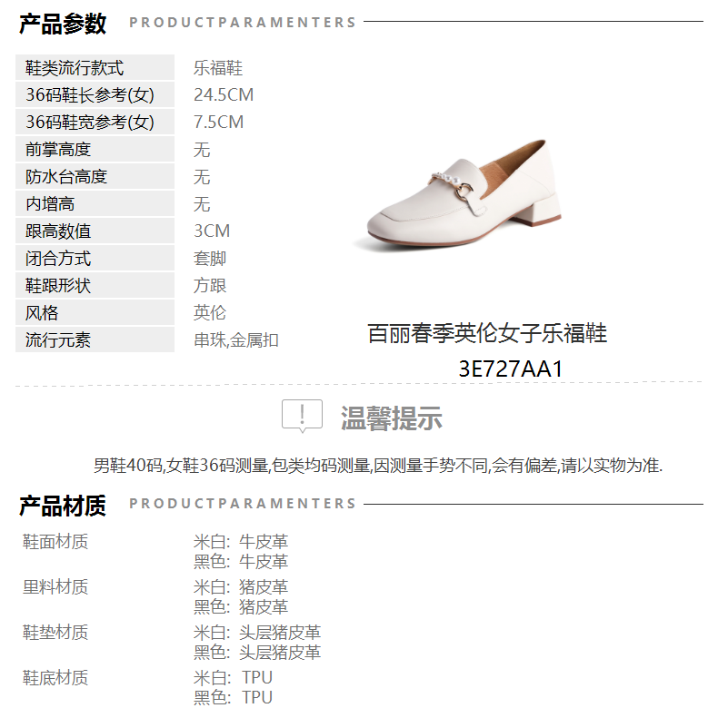 | 风格:英伦 | 跟高数值:3CM | 色系:米色 | 货品来源:自产 | 配跟:无 |