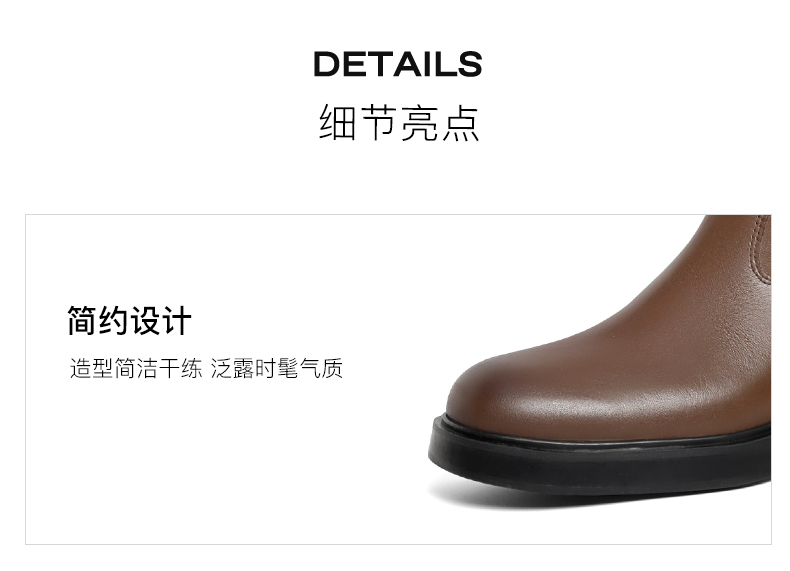 | 鞋底材质:橡胶底 | 靴筒内里材质:猪皮革织物面料 | 内增高:无 | 鞋面材质:牛皮革 | 闭合方式:后拉链 |