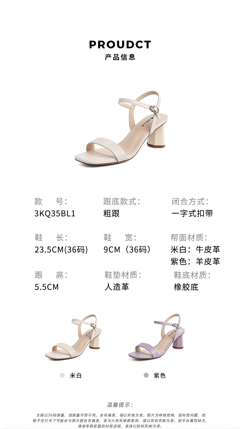 | 鞋头款式:露趾 | 鞋底材质:橡胶底 | 鞋面图案:纯色 | 鞋跟形状:粗跟 | 鞋面材质:牛皮革 |