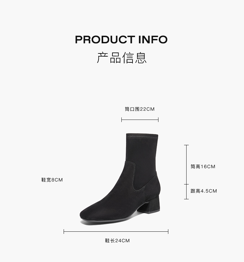 | 配跟:无 | 靴筒口围:22CM | 上市时间:2024年冬季 | 鞋类流行款式:时装靴 | 鞋头款式:方头 |