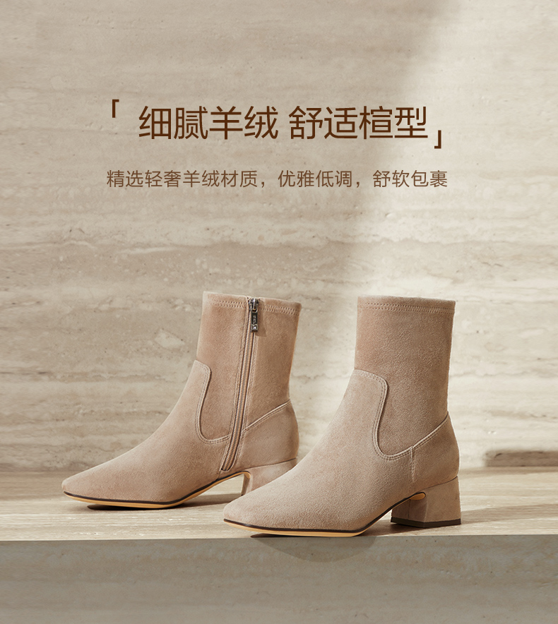 | 鞋底材质:橡胶底 | 靴筒内里材质:人造短毛绒 | 内增高:无 | 鞋面材质:羊皮革 | 闭合方式:侧拉链 |