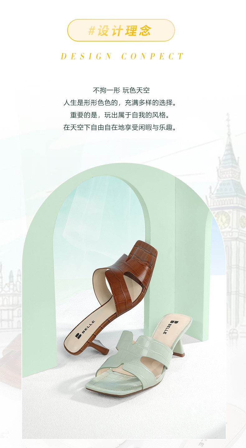 BeLLE(百丽),百变所以美丽。主张多变多元的新生代态度,不断融合潮流趋势,拥抱不同的生活体验与生活经历。将女性的百变魅力注入到鞋履设计中,让女人在不同的人生阶段,不同的场合,不同的潮流趋势下,尽显自己自信的一面。致力于为现代都市女性提供充满自由的行走体验。