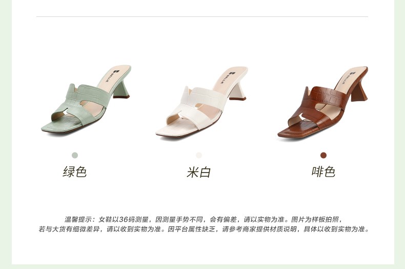 | 鞋头款式:露趾 | 鞋面图案:纯色 | 鞋跟形状:粗跟 | 参考鞋长(女):23.5CM | 参考鞋宽(女):8CM |
