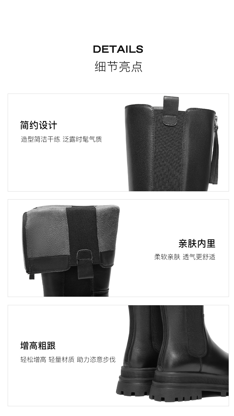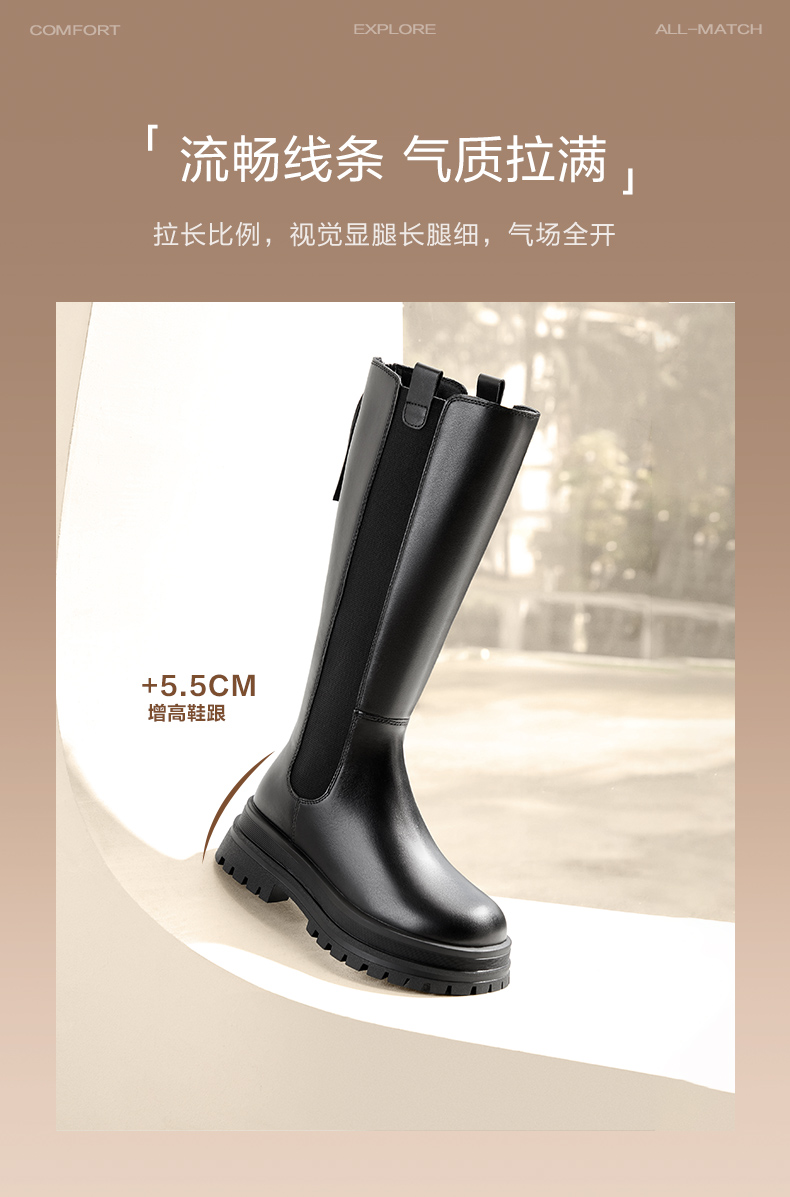 | 风格:时尚休闲 | 色系:黑色 | 跟高数值:5.5CM | 性别:女子 | 筒高数值:35CM |