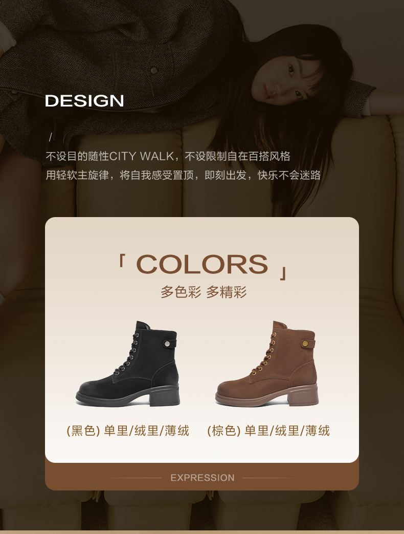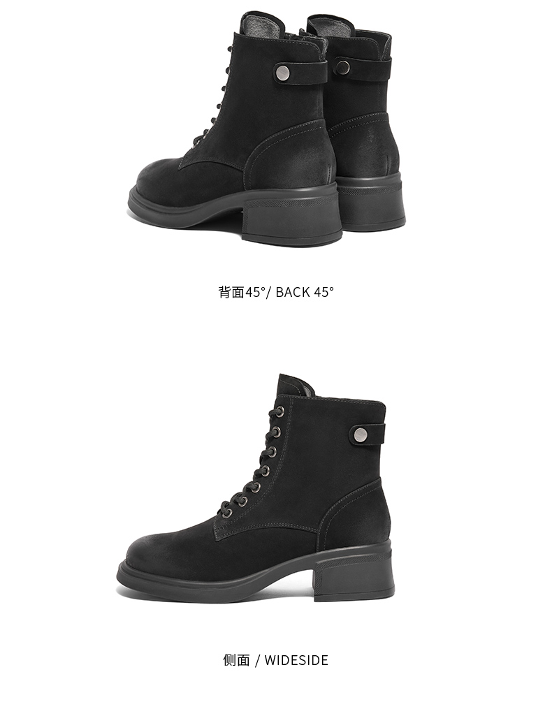 | 鞋底材质:橡胶底 | 靴筒内里材质:人造革人造短毛绒 | 内增高:无 | 鞋面材质:羊皮革 | 闭合方式:系带 |