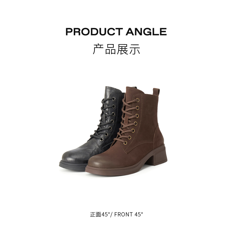 • 百丽复古高跟马丁靴女2025冬新商场同款真皮休闲短靴3NW45DD5