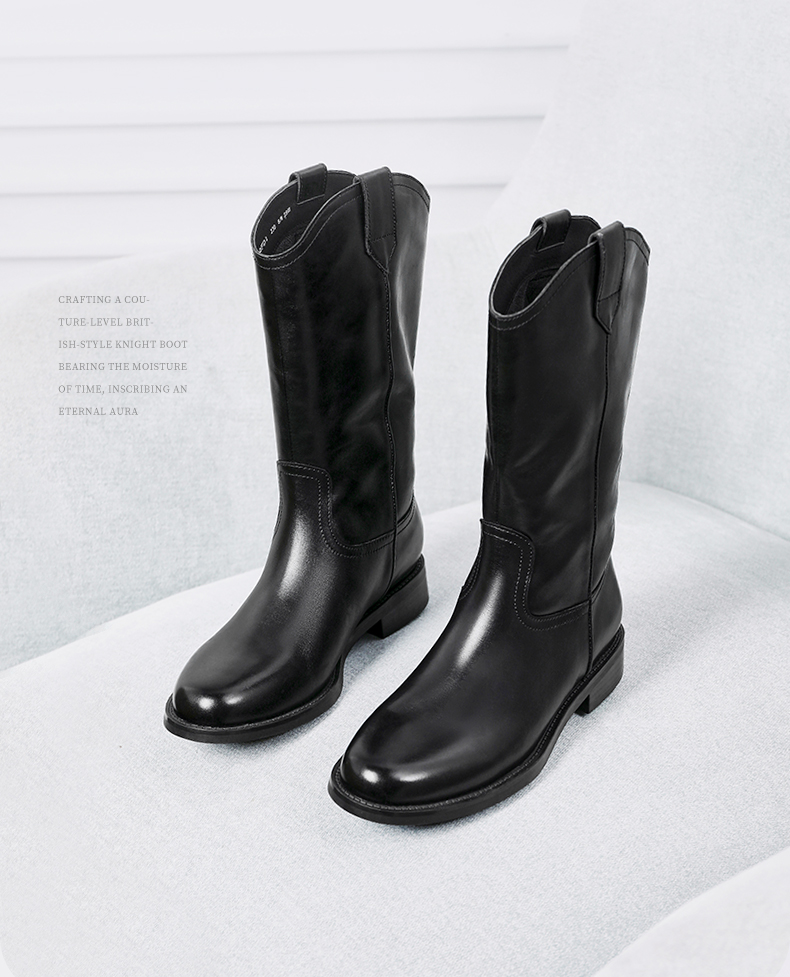 | 风格:复古 | 鞋面内里材质:猪皮革人造短毛绒 | 色系:黑色 | 跟高数值:3CM | 筒高数值:24CM |