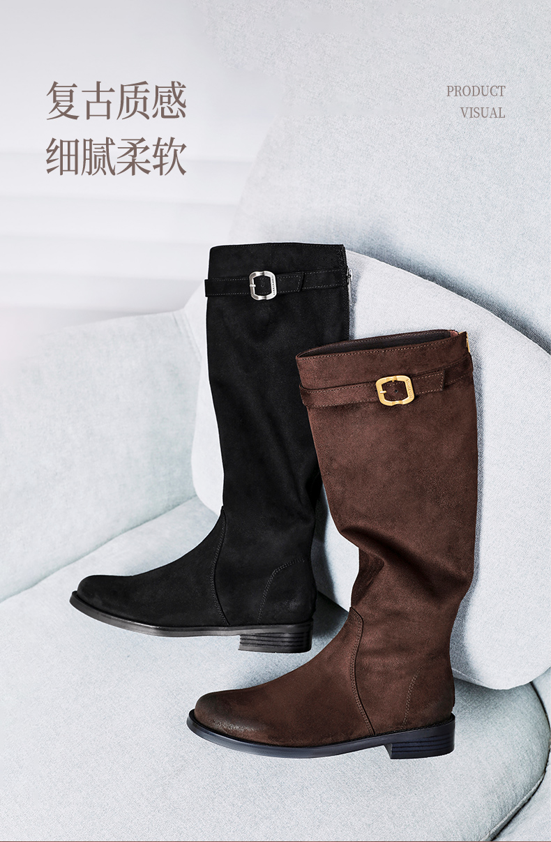 | 风格:休闲 | 鞋面内里材质:猪皮革织物 | 色系:咖啡色 | 跟高数值:3CM | 筒高数值:38CM |