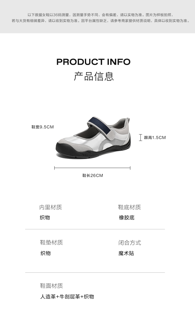 | 闭合方式:魔术贴 | 所在区域:省仓 | 配跟:无 | 开口深度:浅口 | 风格分类:休闲玛丽珍 |