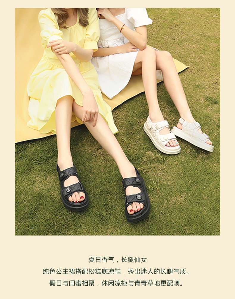 | 鞋头款式:露趾 | 鞋底材质:EVA发泡底 | 鞋面图案:纯色 | 鞋跟形状:厚底 | 鞋面材质:羊皮革 |