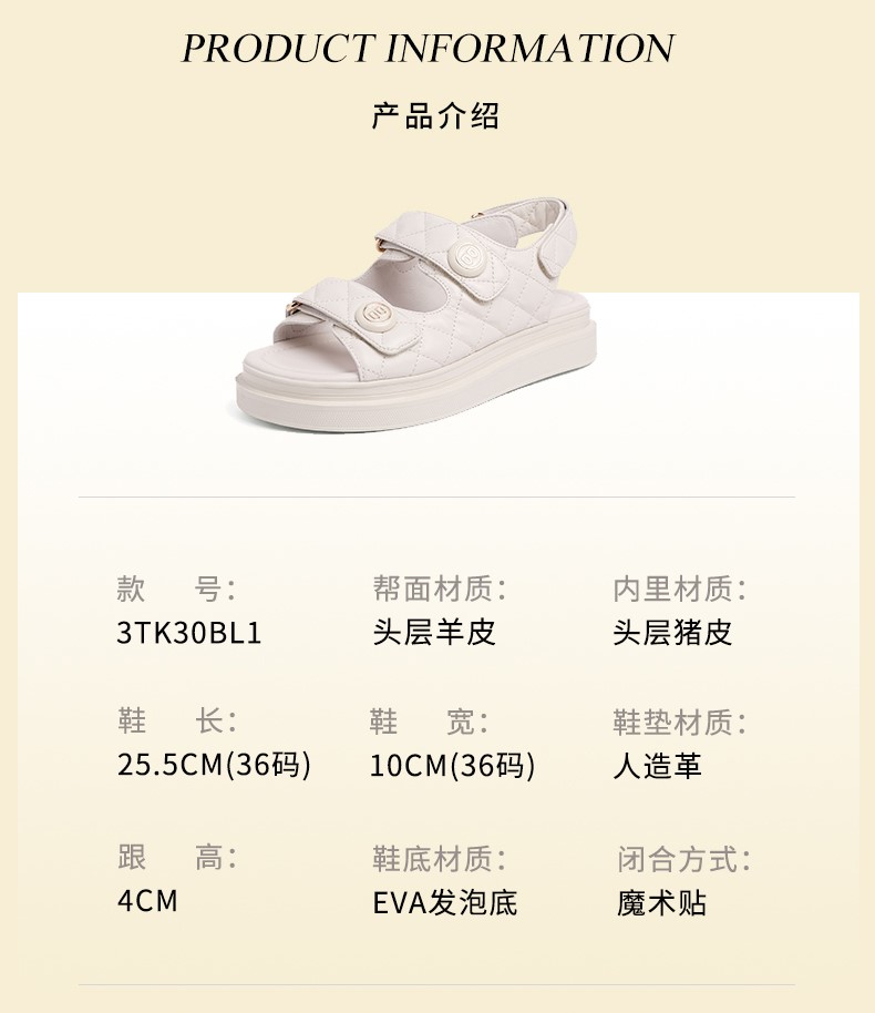 | 里料材质:猪皮革 | 制鞋工艺:皮凉鞋 | 款式季节:夏季 | 鞋垫材质:人造革 | 皮质特征:软面皮 |
