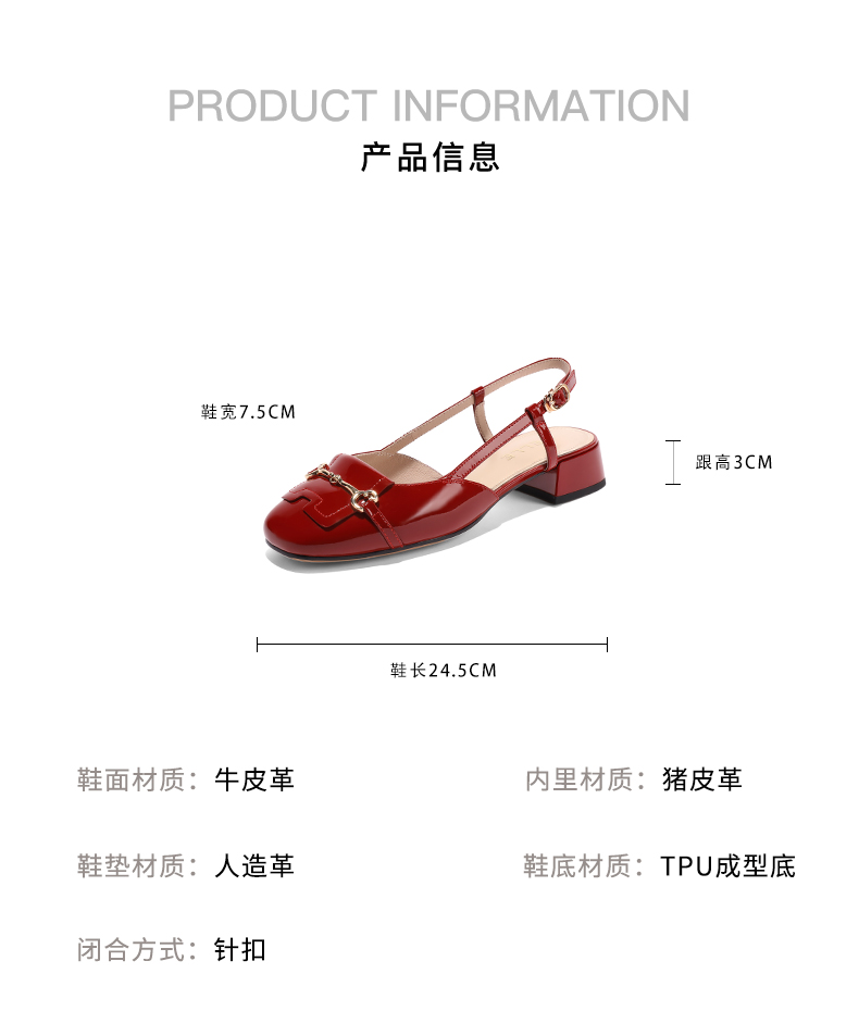 | 鞋头款式:小方头 | 鞋底材质:TPU | 鞋面图案:纯色 | 鞋跟形状:平跟 | 鞋面材质:牛皮革 |