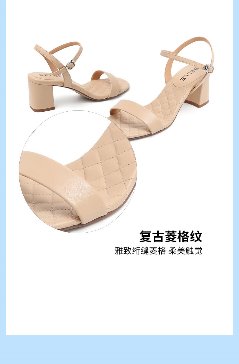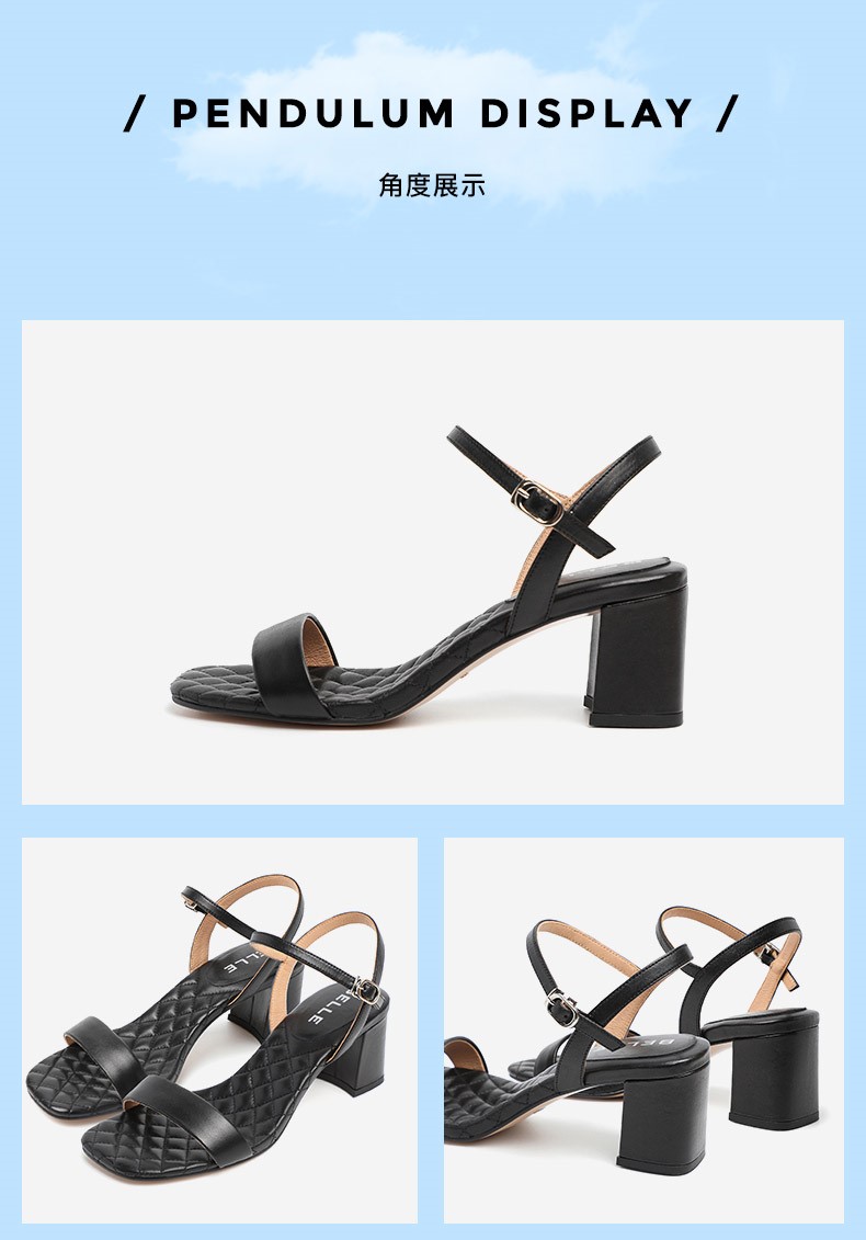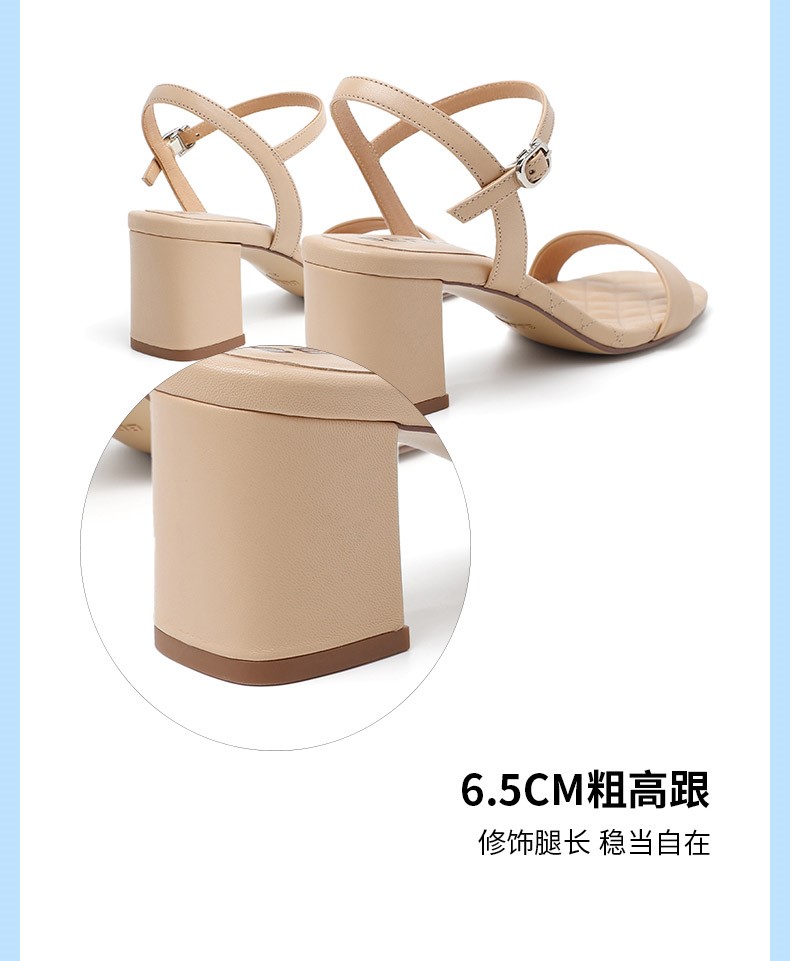 | 鞋头款式:露趾 | 鞋底材质:橡胶底 | 鞋面图案:纯色 | 鞋跟形状:粗跟 | 鞋面材质:羊皮革 |
