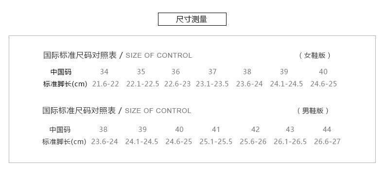 | 法国码 | 38 | 39 | 40 | 41 | 42 | 43 | 44 |