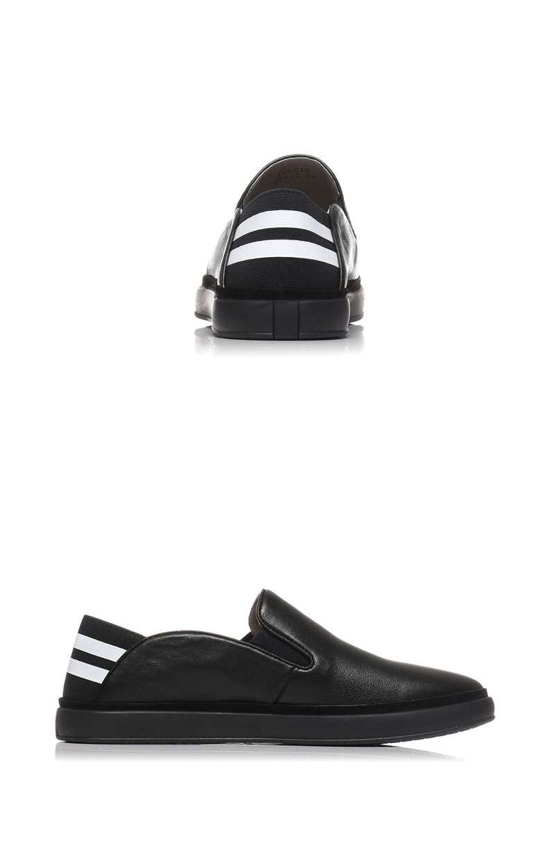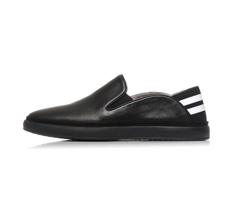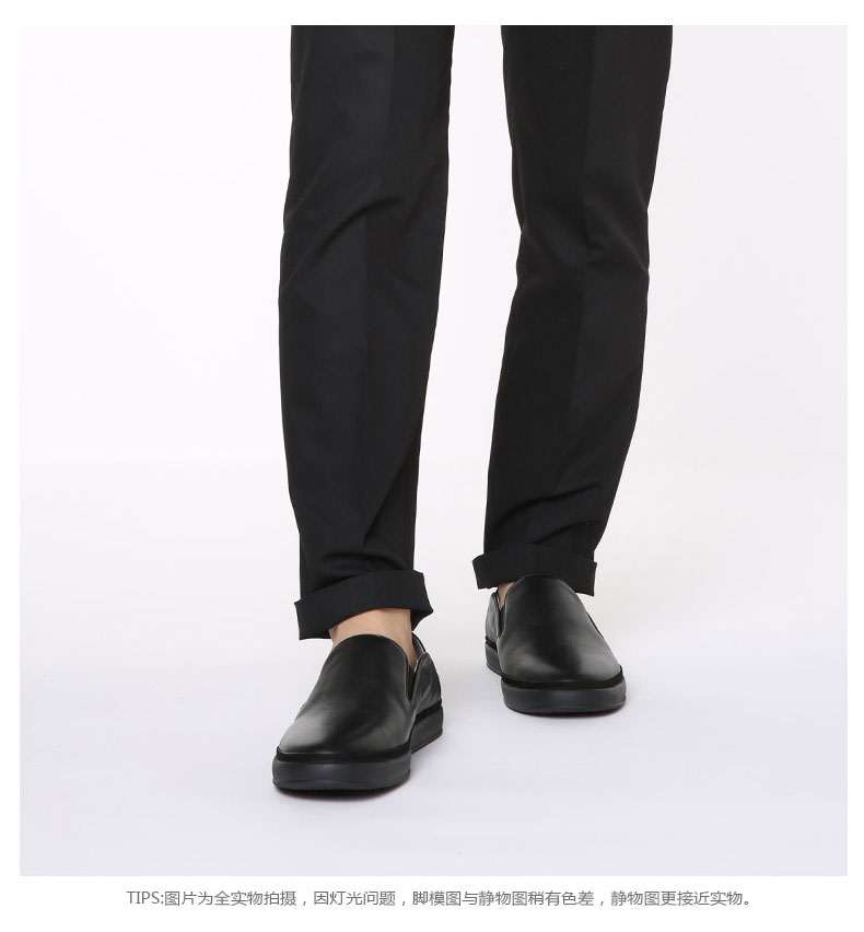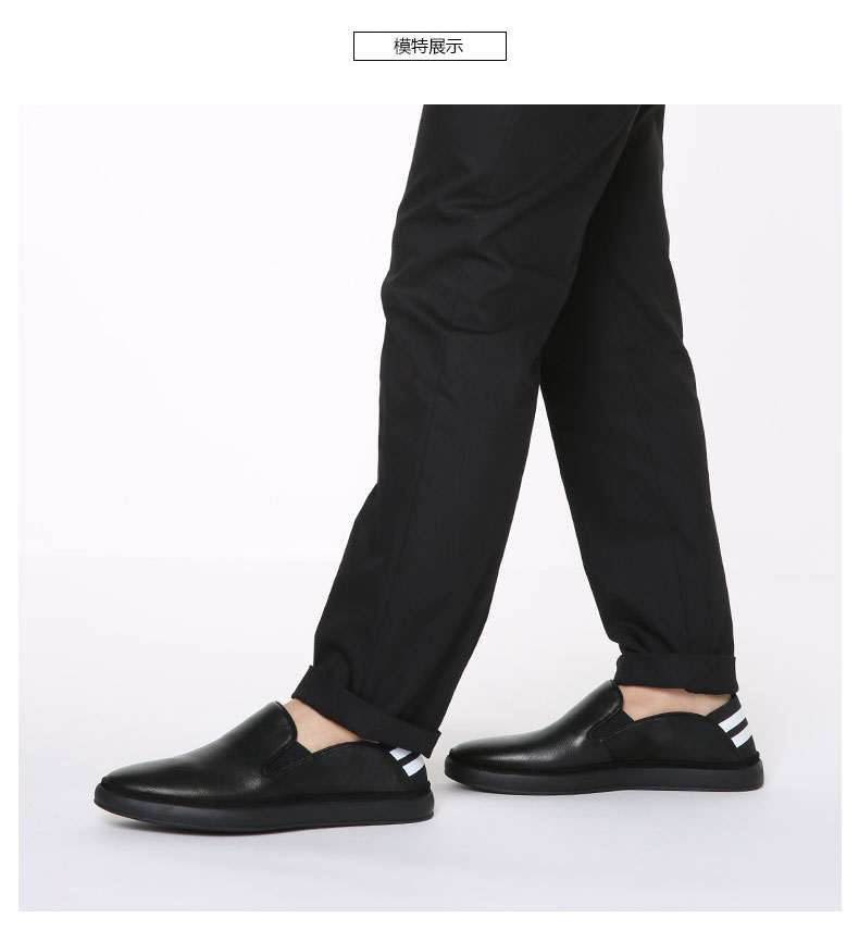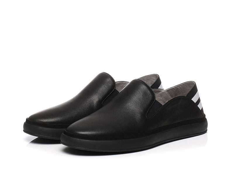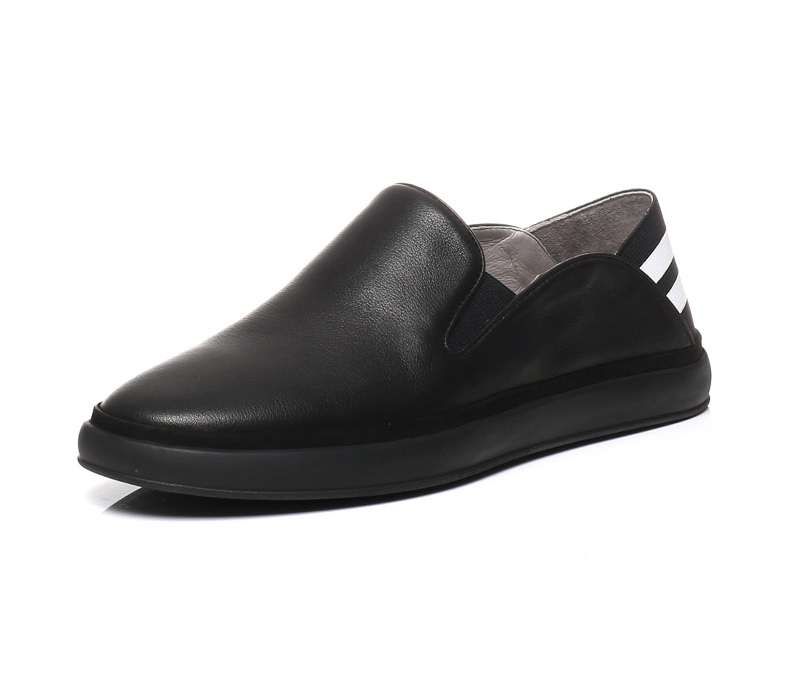| 鞋面材质:牛皮革 | 流行元素:撞色 | 闭合方式:套脚 | 风格:休闲 | 色系:黑色 |