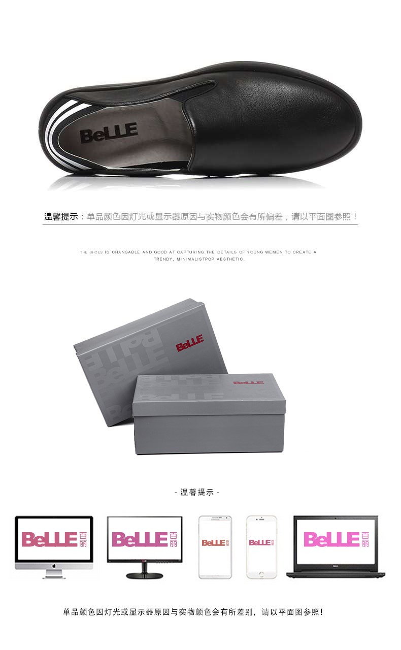 BeLLE(百丽),百变所以美丽。主张多变多元的新生代态度,不断融合潮流趋势,拥抱不同的生活体验与生活经历。将女性的百变魅力注入到鞋履设计中,让女人在不同的人生阶段,不同的场合,不同的潮流趋势下,尽显自己自信的一面。致力于为现代都市女性提供充满自由的行走体验。