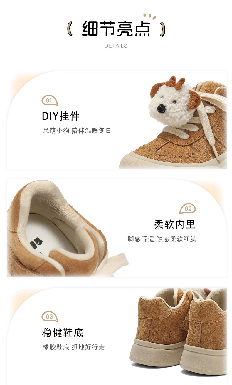 | 鞋面内里材质:织物 | 色系:棕色 | 适用场景:休闲 | 适用人群:儿童 | 性别:女童 |