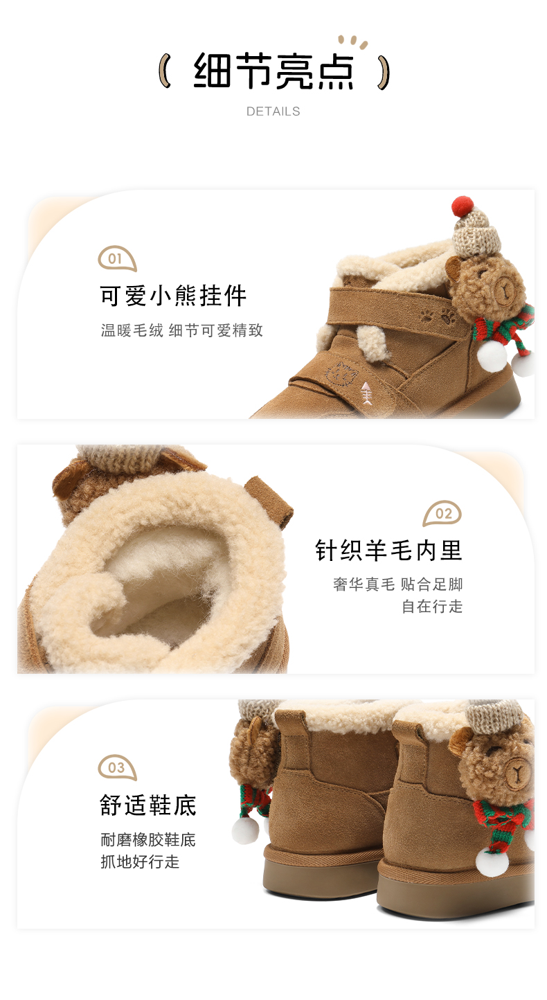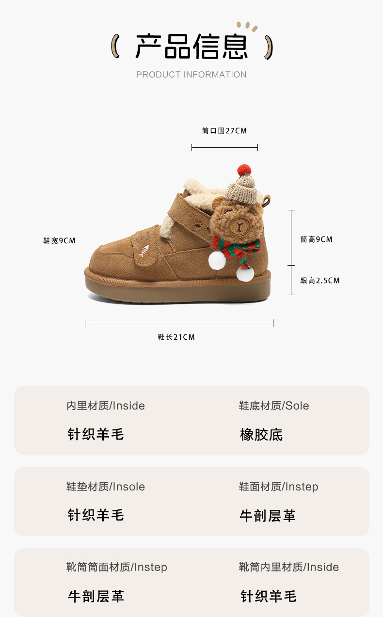 | 鞋头:圆头 | 颜色:棕色 | 上市时间:2025年冬季 | 鞋类流行款式:雪地靴 | 适用季节:冬季 |