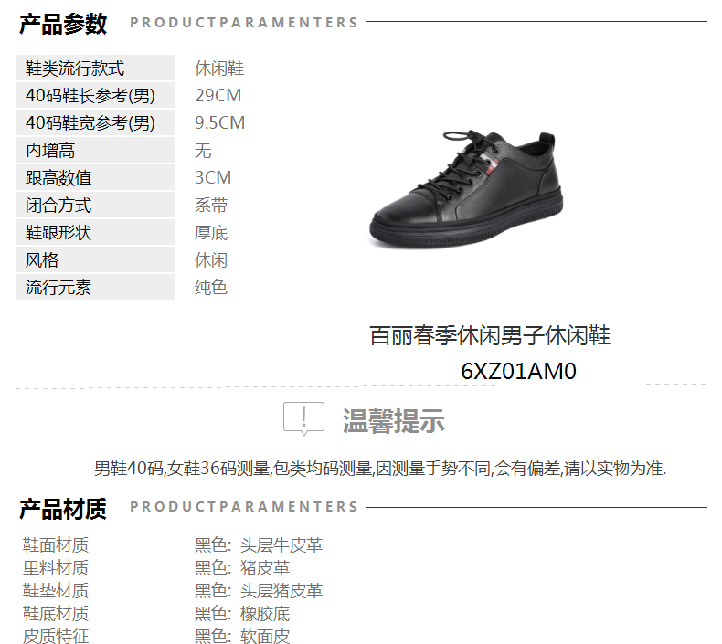 | 色系:黑色 | 跟高数值:3CM | 货品来源:外购 | 40码鞋宽参考(男):9.5CM | 性别:男子 |