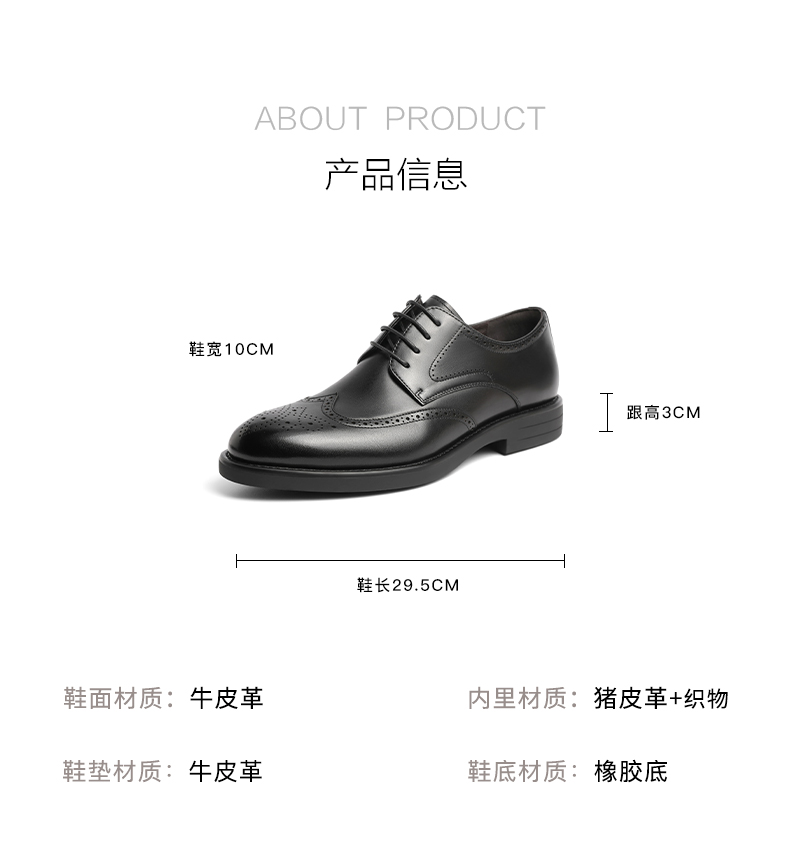 | 上市时间:2023年春季 | 生产/经销/进口厂家: | 鞋类流行款式:商务正装鞋 | 鞋头款式:圆头 | 执行标准: |