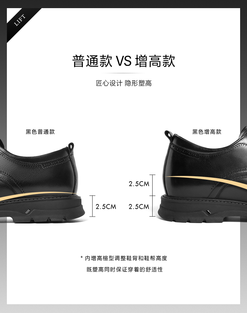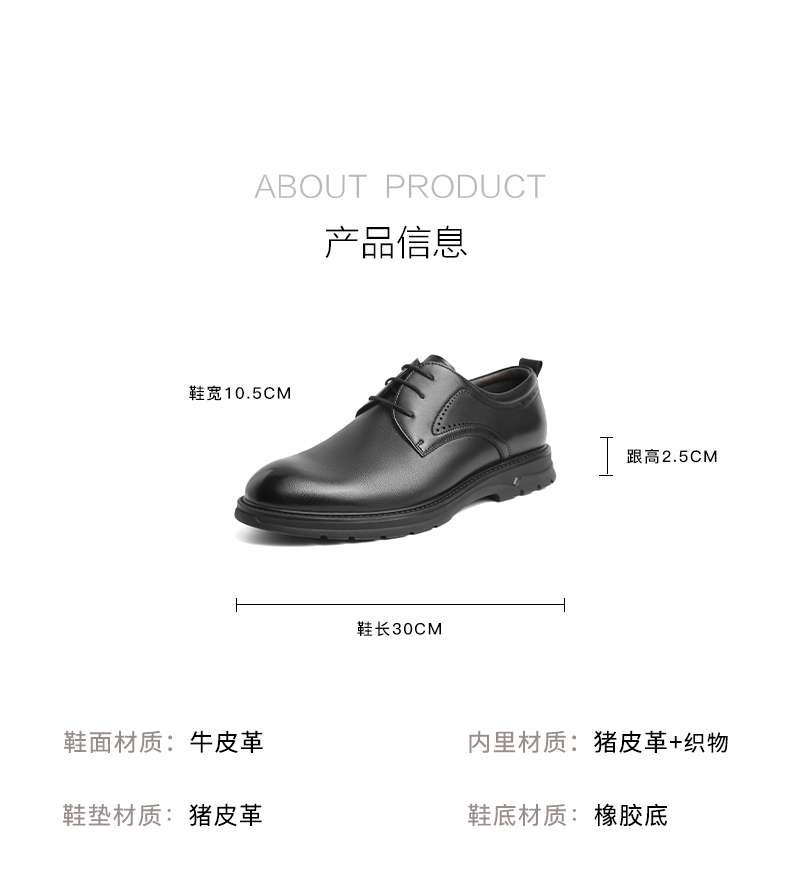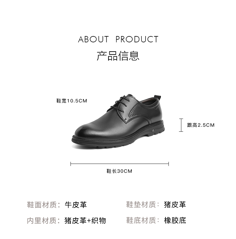 | 风格:商务 | 色系:黑色 | 跟高数值:2.5CM | 40码鞋宽参考(男):10.5CM | 性别:男子 |
