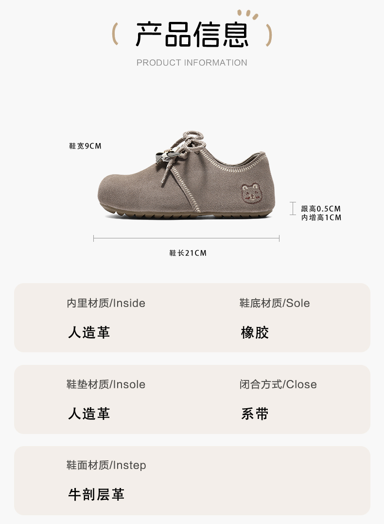 | 鞋帮:低帮 | 适用性别:女 | 鞋底材质:橡胶底 | 鞋面材质:牛剖层革 | 闭合方式:系带 |