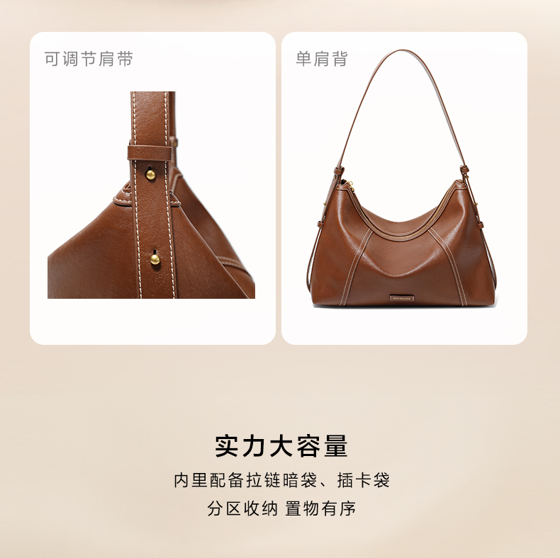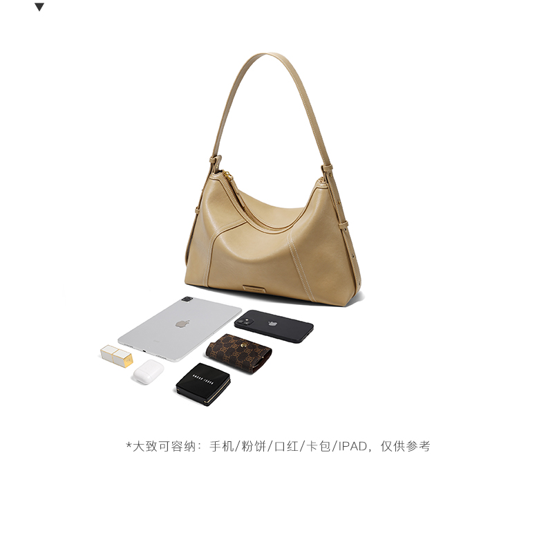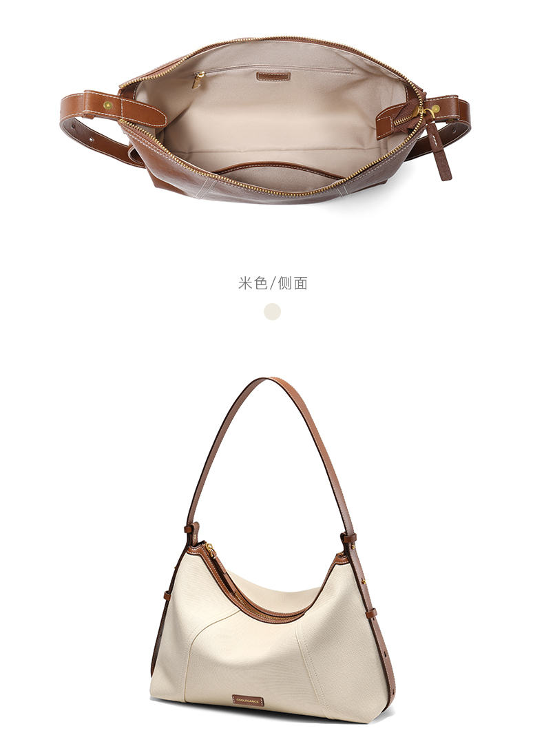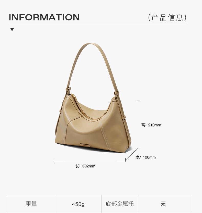 | 包的规格:W330*H210*D100mm | 内部结构:拉链暗袋/卡位 | 背带方式:单肩/斜挎 | 风格:OL通勤 | 色系:米色 |