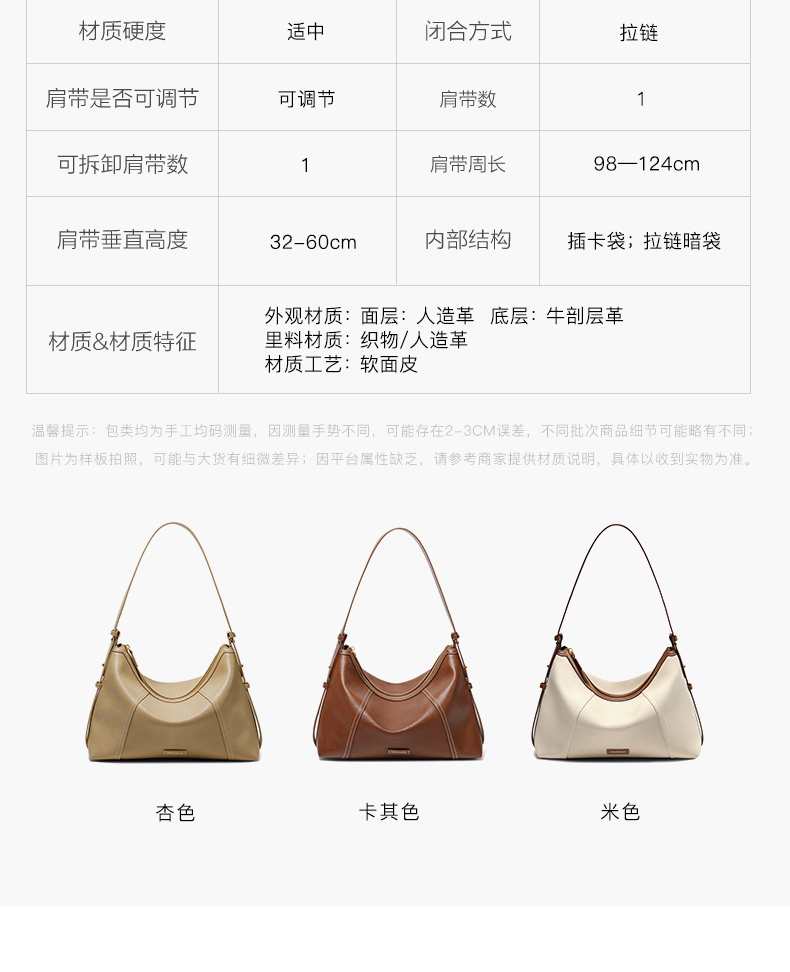 | 适用场景:通勤 | 开袋方式:拉链 | 性别:女子 | 手柄高:无 | 里料材质:织物/人造革 |