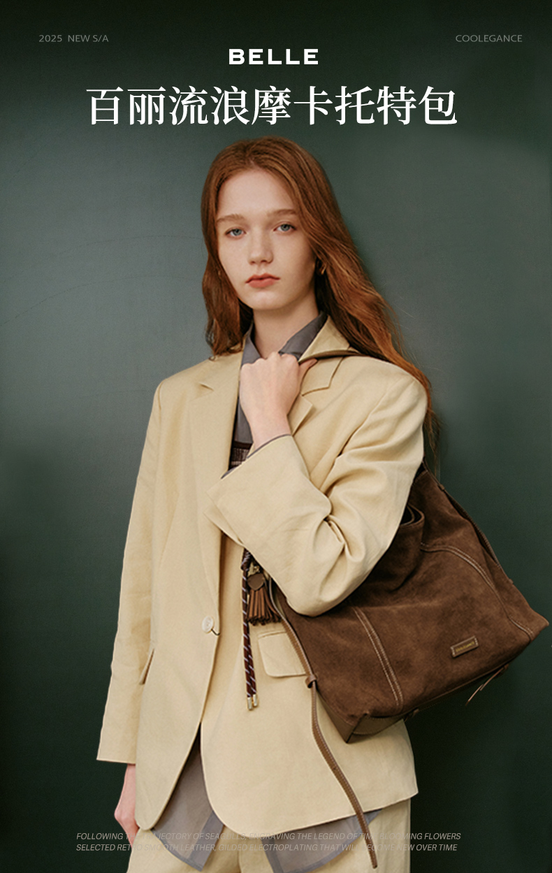 BeLLE(百丽),百变所以美丽。主张多变多元的新生代态度,不断融合潮流趋势,拥抱不同的生活体验与生活经历。将女性的百变魅力注入到鞋履设计中,让女人在不同的人生阶段,不同的场合,不同的潮流趋势下,尽显自己自信的一面。致力于为现代都市女性提供充满自由的行走体验。