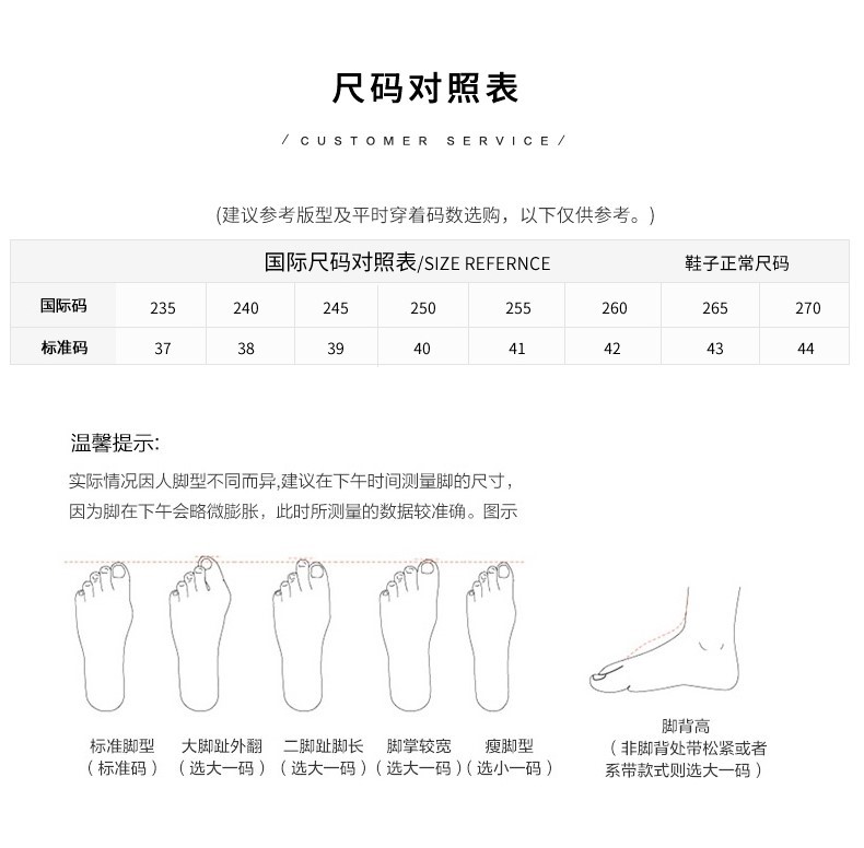 | 法国码 | 38 | 39 | 40 | 41 | 42 | 43 | 44 |