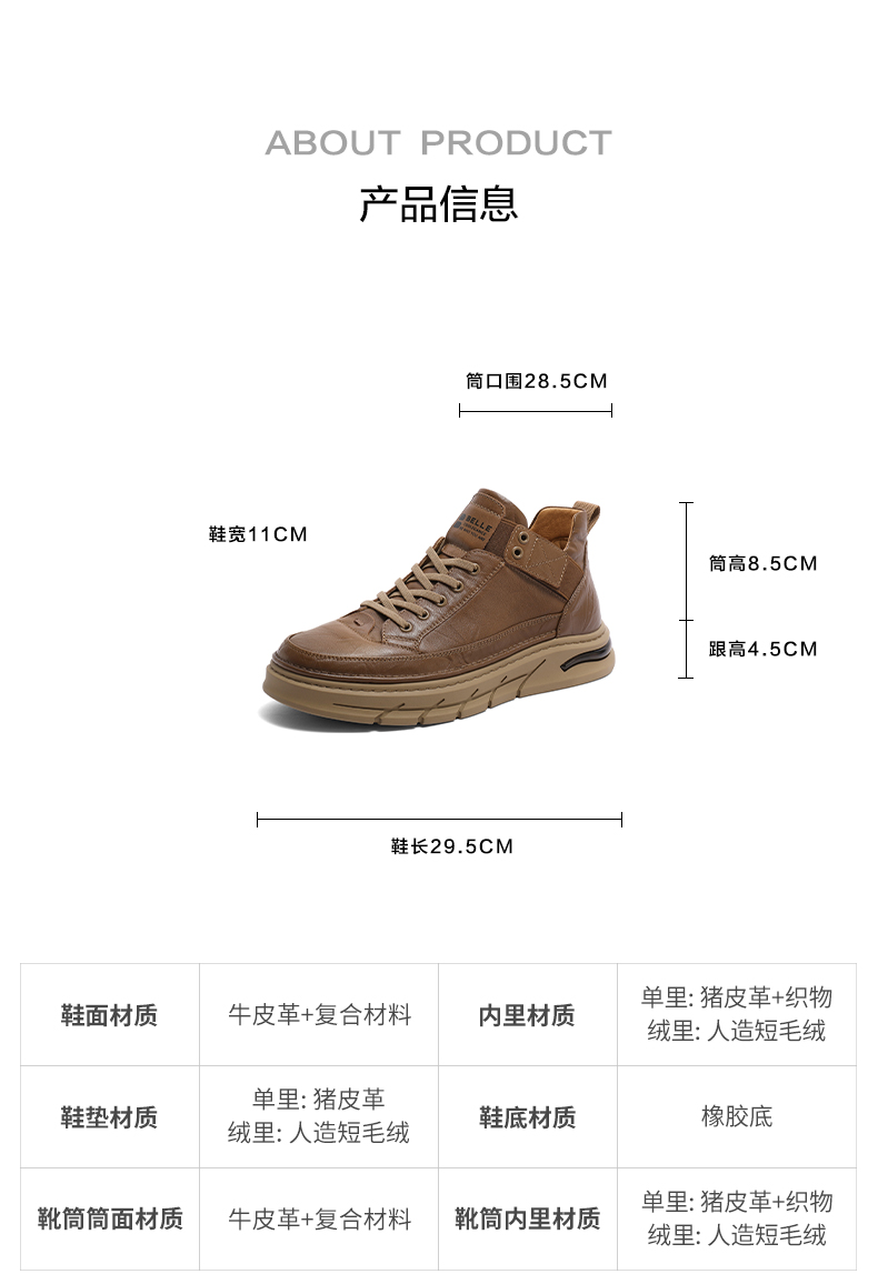 | 里料材质:织物面料猪皮革 | 上市时间:2023年冬季 | 制鞋工艺:缝制鞋 | 款式季节:冬季 | 鞋垫材质:猪皮革 |