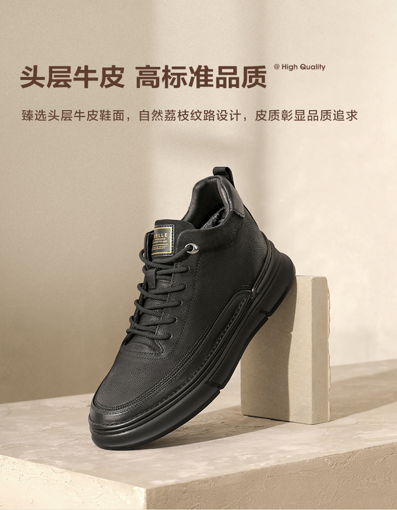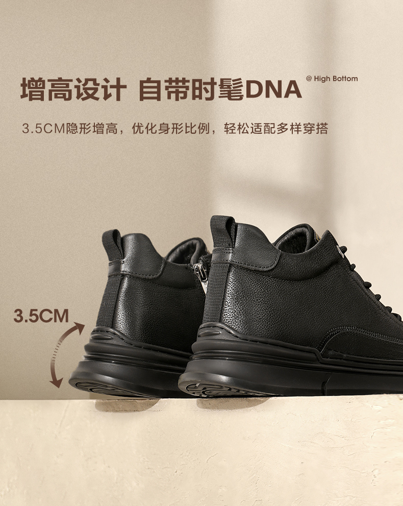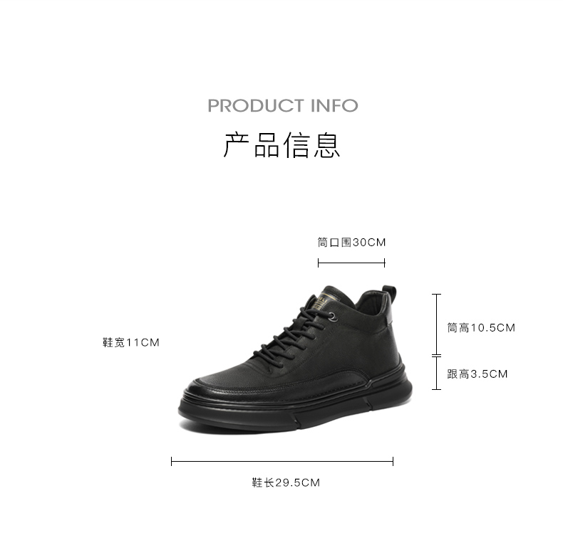 | 风格:休闲 | 色系:黑色 | 跟高数值:3.5CM | 40码鞋宽参考(男):11CM | 筒高数值:10.5CM |