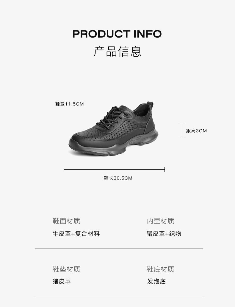 | 风格:休闲 | 色系:黑色 | 跟高数值:3CM | 40码鞋宽参考(男):11.5CM | 性别:男子 |