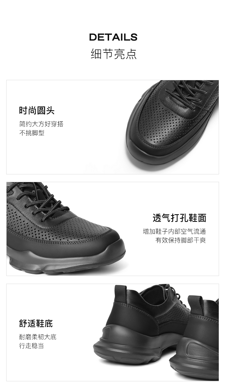| 内增高:无 | 鞋跟形状:厚底 | 鞋面材质:复合材料牛皮革 | 流行元素:打孔透气 | 闭合方式:抽带 |
