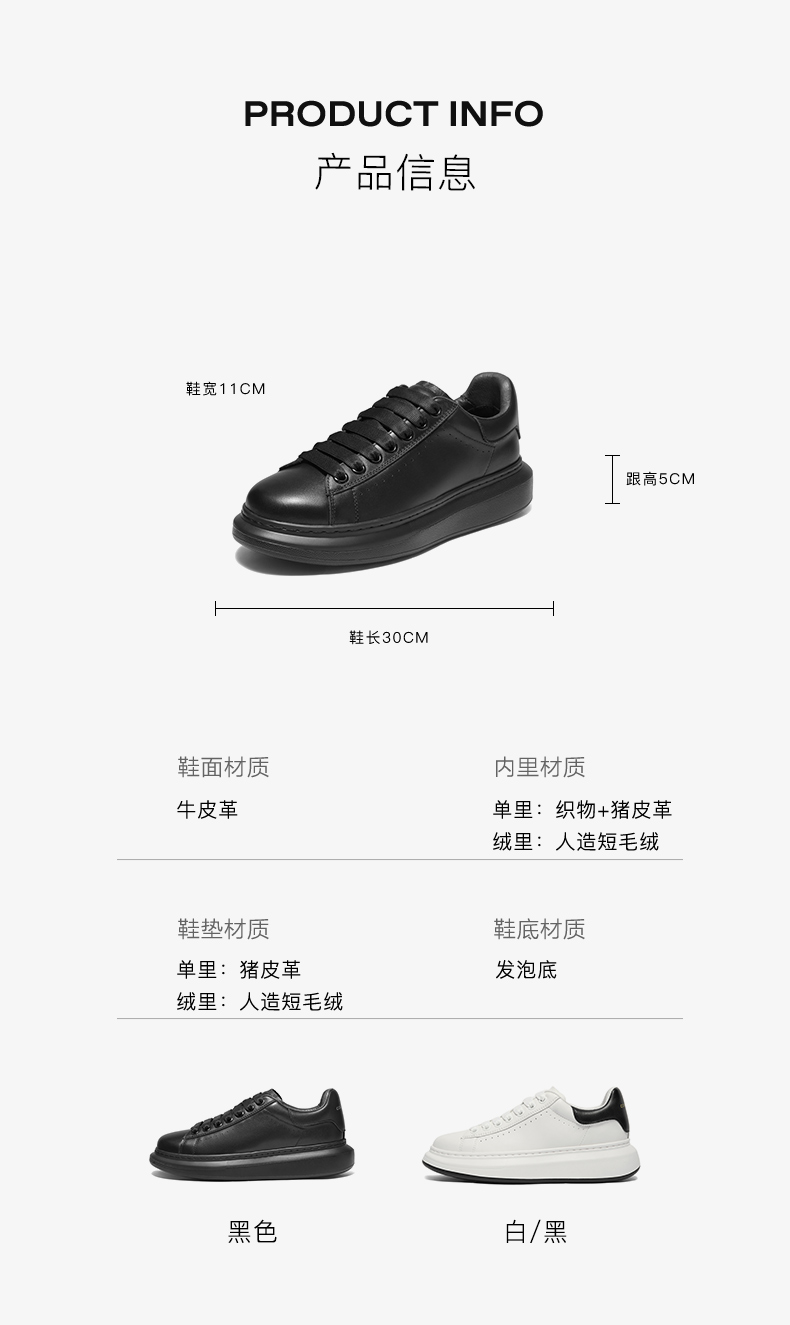 | 风格:休闲 | 色系:白色 | 跟高数值:5CM | 40码鞋宽参考(男):11CM | 性别:男子 |