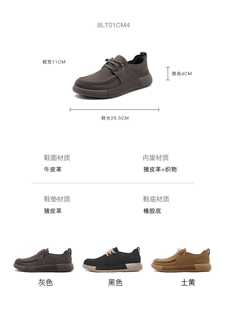 | 风格:休闲 | 色系:卡其 | 跟高数值:4CM | 40码鞋宽参考(男):11CM | 性别:男子 |