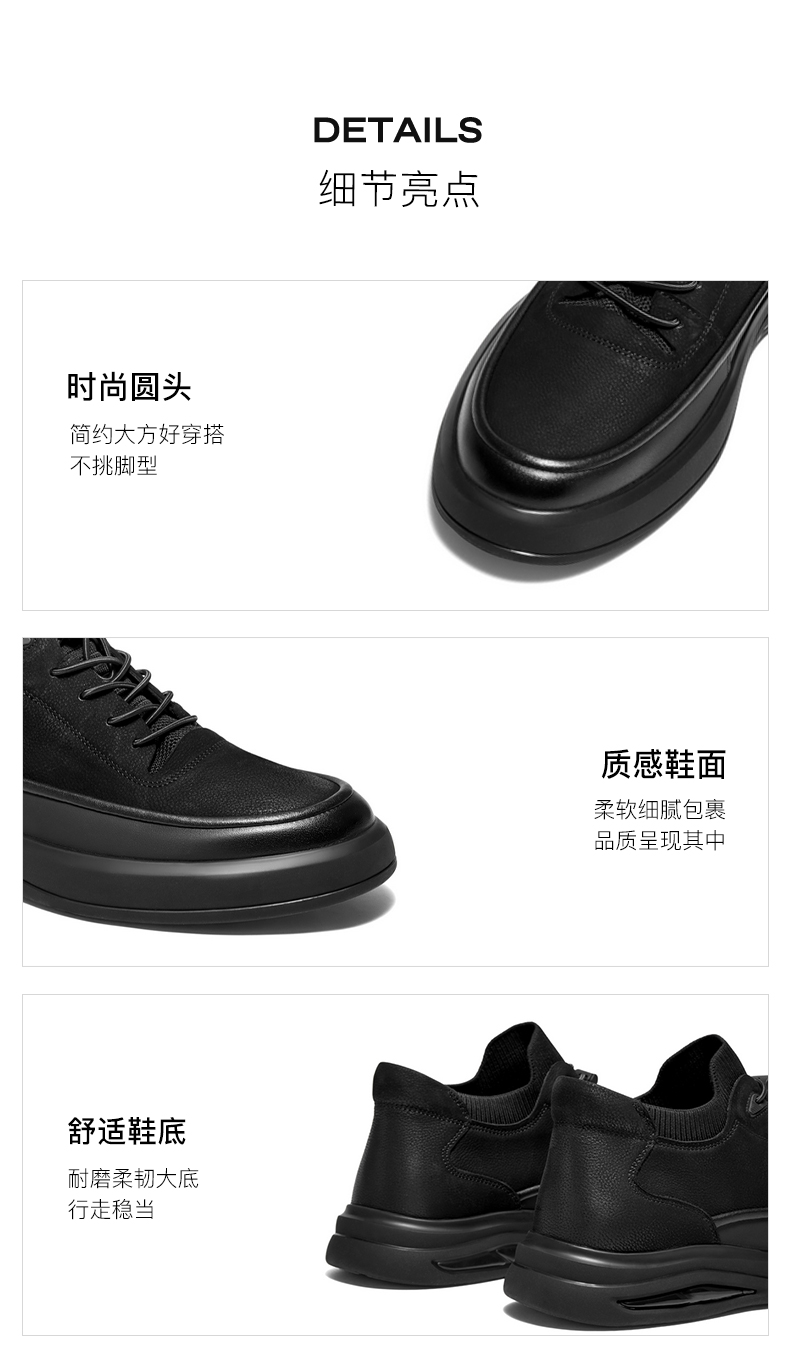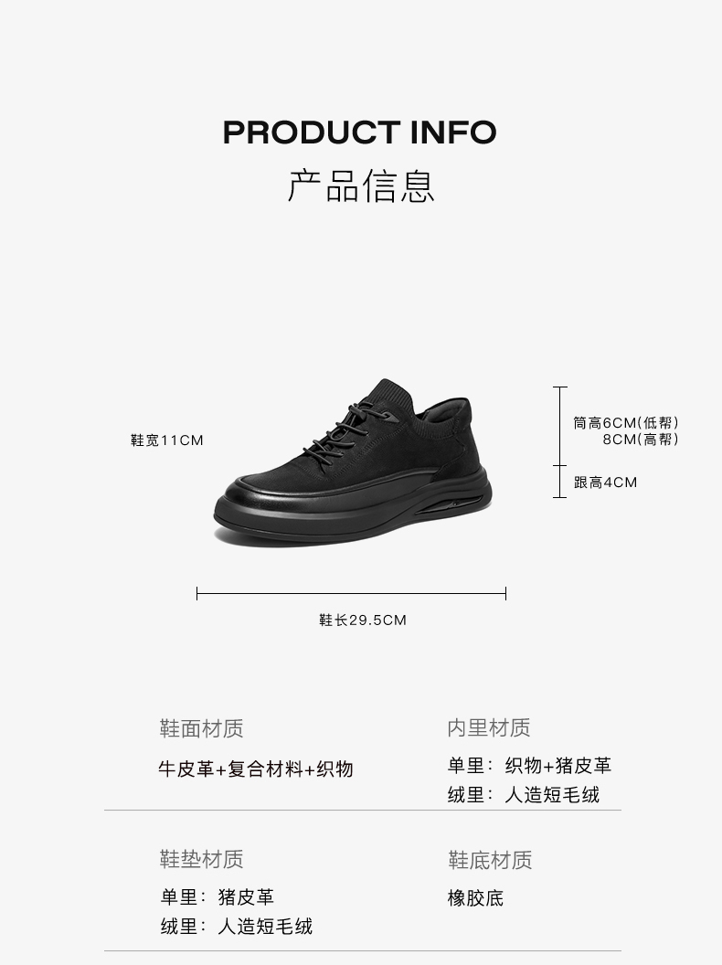 | 风格:休闲 | 色系:黑色 | 跟高数值:4CM | 40码鞋宽参考(男):11CM | 性别:男子 |