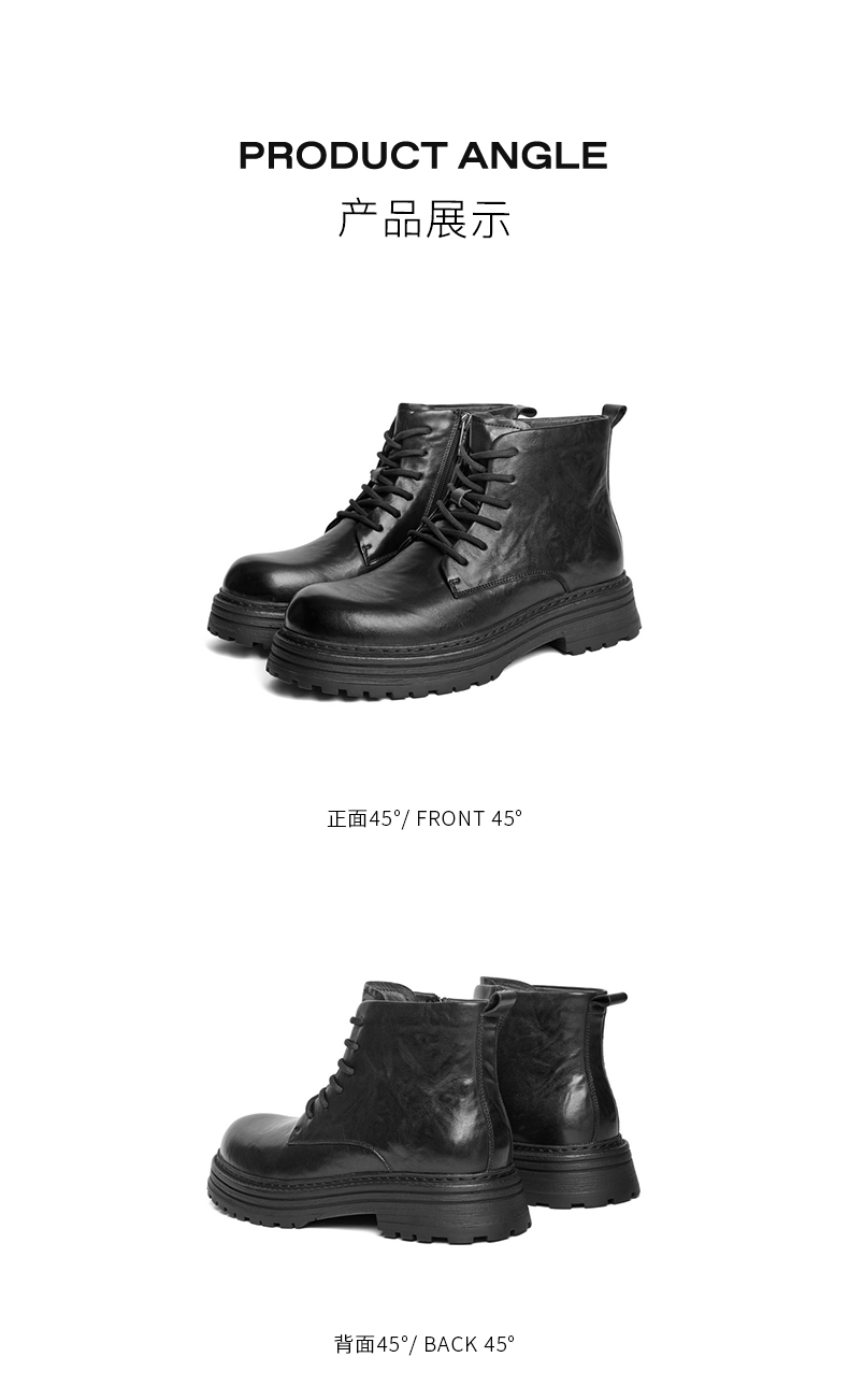 | 色系:黑色 | 跟高数值:4.5CM | 40码鞋宽参考(男):12CM | 筒高数值:12CM | 性别:男子 |