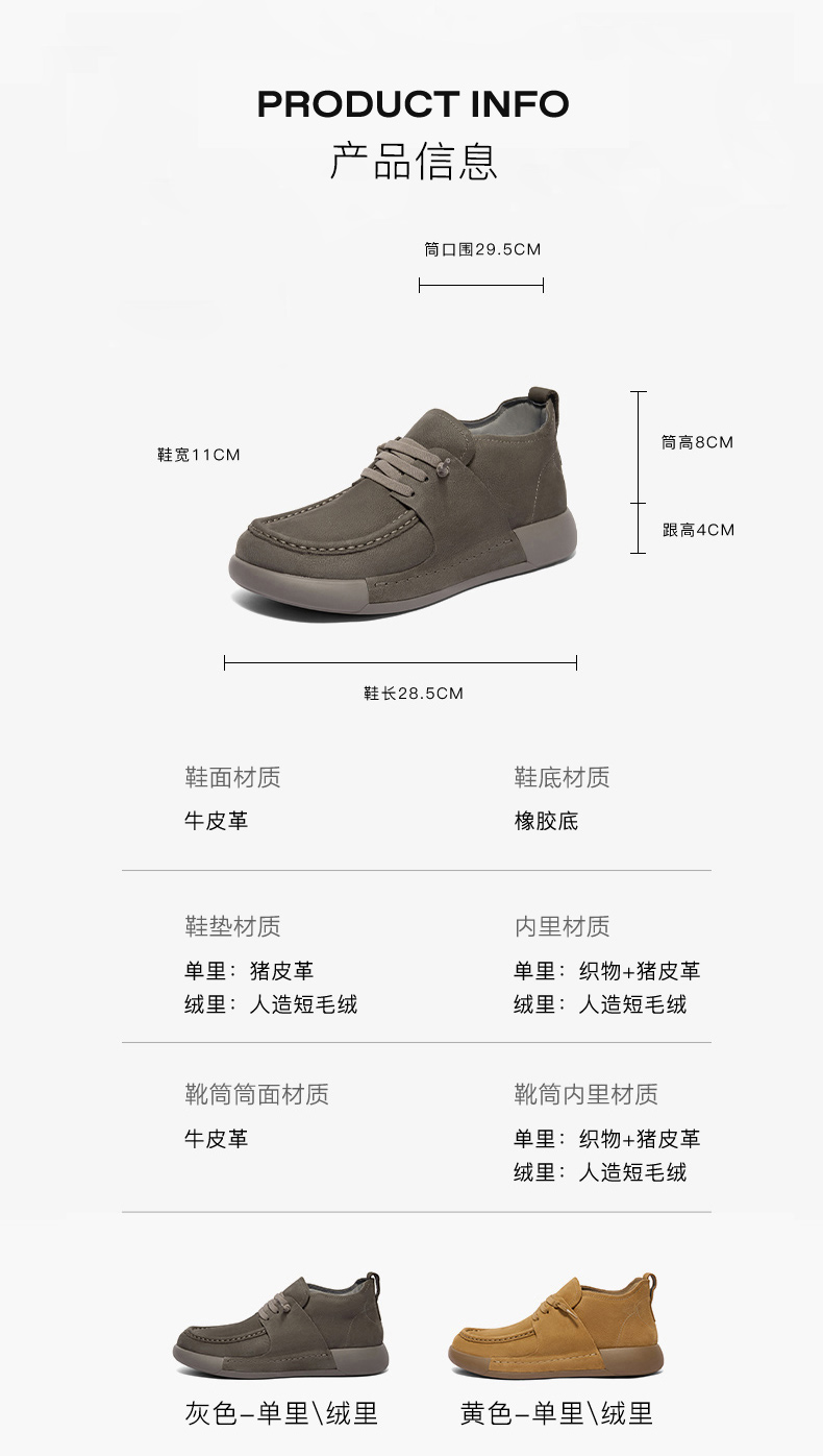 | 性别:男子 | 里料材质:猪皮革织物面料 | 制鞋工艺:胶贴皮鞋 | 鞋垫材质:猪皮革 | 款式季节:冬季 |