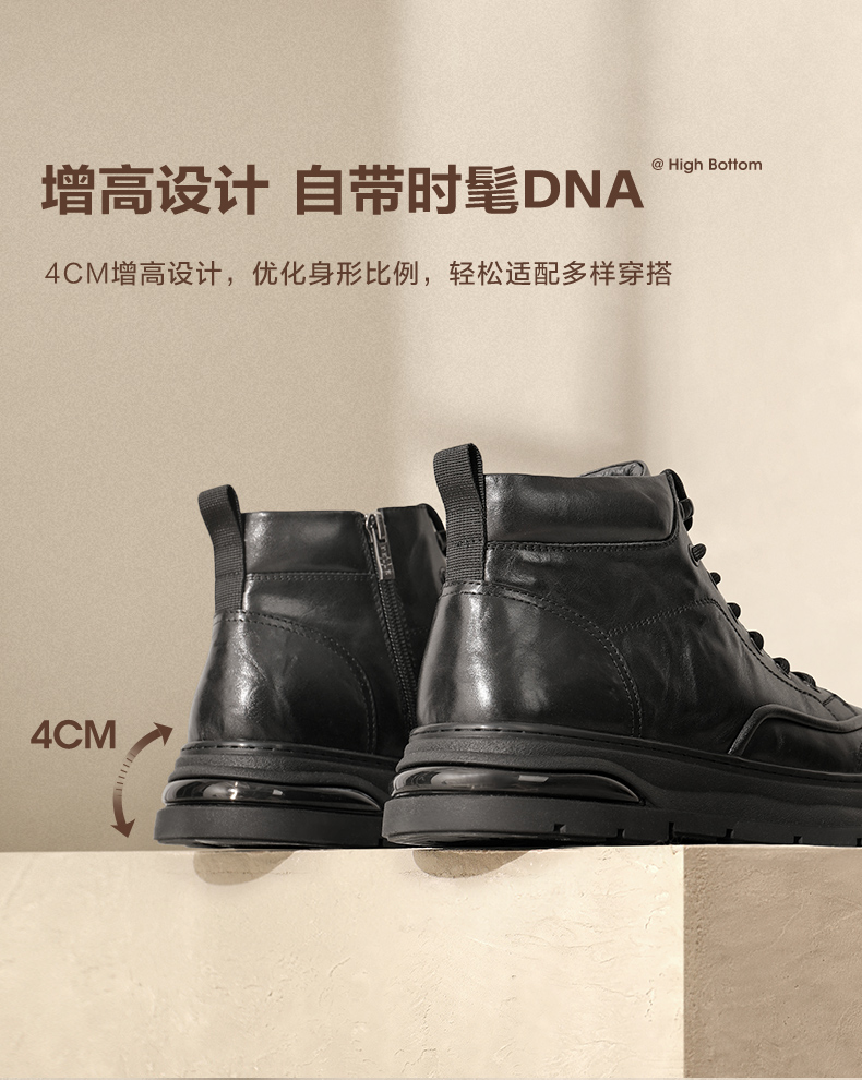 | 风格:休闲 | 色系:黑色 | 跟高数值:4CM | 40码鞋宽参考(男):11.5CM | 筒高数值:12CM |